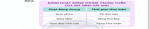 1. Chia sẻ thời gian biểu hoạt động chung của gia đình em.