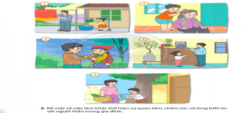 2. Kể một số việc làm khác thể hiện sự quan tâm, chăm sóc và lòng biết ơn với những người thân trong gia đình.