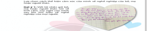 Chia sẻ lời nhắn gửi, tranh vẽ em đã làm để bày tỏ cảm xúc của em về nghề nghiệp của bố mẹ và người thân.