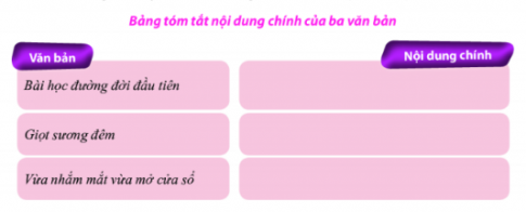 1. Dựa vào bảng sau hãy tóm tắt nội dung của ba văn bản (làm vào vở):