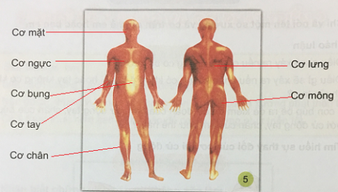 Chỉ trên hình 5 và nói tên một số cơ của cơ thể: