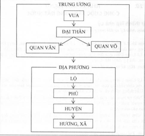 - Ở địa phương : cả nước được chia thành 24 lộ, phủ do các tri phủ, tri châu đứng đầu ; giao cho các con cháu nhà vua hoặc đại thần cai quản. Dưới lộ, phủ là huyện, hương, xã.