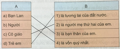 Chọn từ ngữ thích hợp ở cột A ghép với từ ngữ ở cột B để tạo thành câu kể Ai là gì?