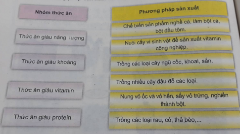 a. Nối tên phương pháp sản xuất với nhóm thức ăn cho phù hợp: