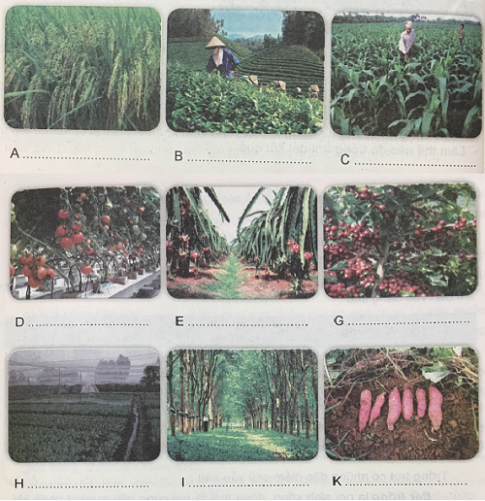 Chọn tên cây trồng thích hợp để điền vào chỗ chấm (...) dưới mỗi hình ảnh ở hình 2.1