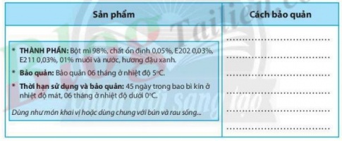 Câu 5. Nêu cách bảo quản loại thực phầm được dán nhãn như sau.