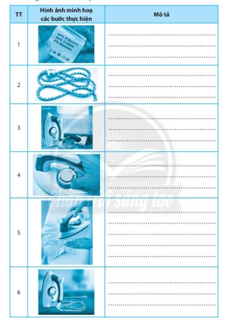 Câu 5. Mô tả các bước thực hiện trong quy trình sử dụng bàn là được minh hoạ bởi những hình ảnh dưới đây.