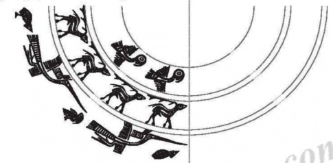 - Hình người đội mũ cánh chim, mắt chim ở đầu mũi thuyệ, đầu mũi tên, trên mái chèo, bánh lái thuyền