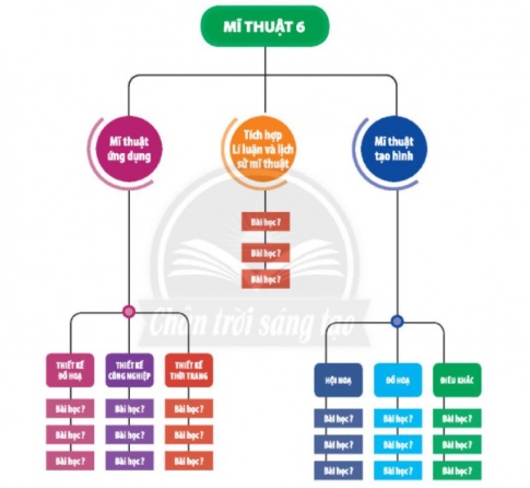 Câu 2. Hãy thể hiện bằng hình ảnh hệ thống các bài học mĩ thuật đã phân loại ở bài tập 1.