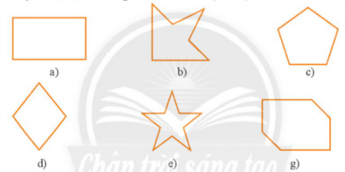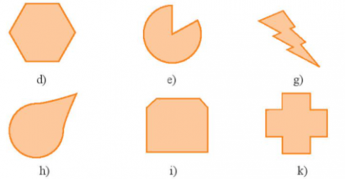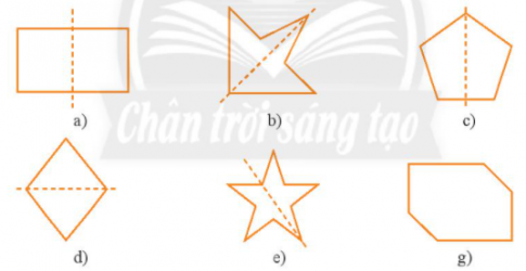 Các trục đối xứng được chỉ ra trên hình vẽ. Hình g) không có trục đối xứng.