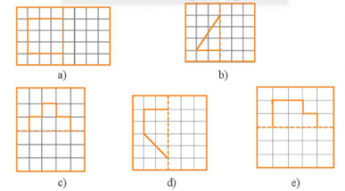 Bài 5. Vẽ thêm để các hình sau có trục đối xứng là đường nét đứt trên hình vẽ.