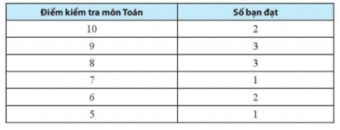 Bài 3. Hãy lập bảng dữ liệu ban đầu để tìm hiểu điểm kiểm tra môn Toán gần đây nhất của các bạn trong tổ em và lập bảng thống kê tương ứng.