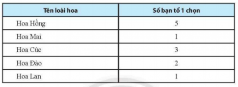 Bài 1. Điều tra loài hoa yêu thích nhất của 12 học sinh tổ 1 lớp 6B, bạn tổ trưởng thu được bảng dữ liệu như sau:
