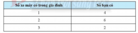 Bước 1: Học sinh ghi nhanh số xe máy có trong gia đình của từng bạn trong tổ vào bảng dữ liệu ban đầu, chẳng hạn như:
