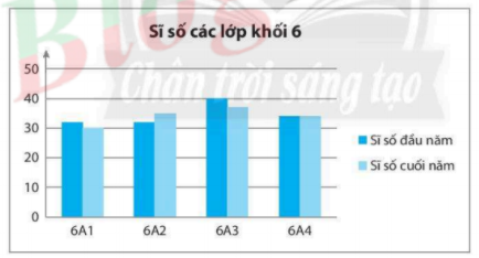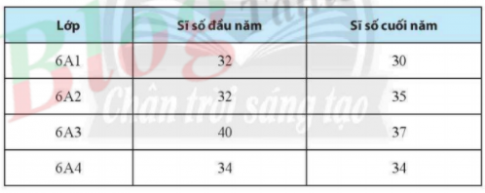 Bài 5. Vẽ biểu đồ kép biểu diễn sĩ số học sinh đầu năm và cuối năm của bốn lớp khối 6 được cho trong bảng sau: