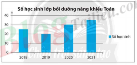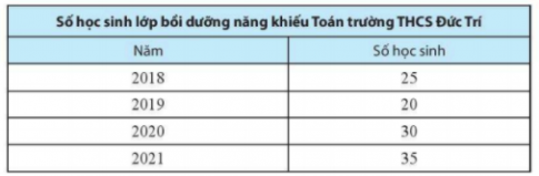Bài 2. Biểu đồ cột dưới đây cho biết thông tin về số học sinh của lớp bồi dưỡng năng khiếu Toán của trường THCS Đức Trí trong 4 năm. Em hãy ghi các thông tin đọc được từ biểu đồ vào bảng thống kê tương ứng.