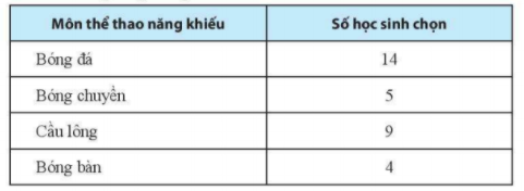 Bài 3. Vẽ biểu đồ biểu diễn số học sinh chọn các môn thể thao năng khiếu của lớp 6C được cho trong bảng thống kê sau: