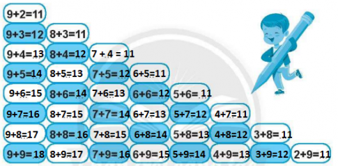 9 + 7 = 9 + 1 + 6 9 + 9 = 9 + 1 + 8