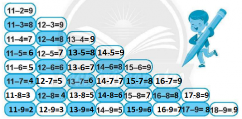 16 - 7 = ... 18 - 9 = ... 12 - 8= ...