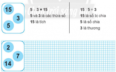 Bài 4. Cho ba số, từ ba số này em viết một phép nhân và một phép chia rồi viết tên các thành phần của phép tính đó (xem mẫu)