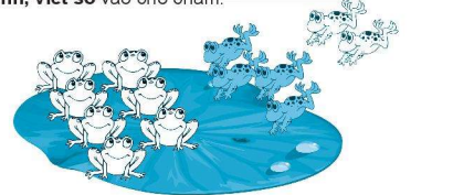 Có ...... con ếch đang ngồi trên lá sen, thêm ............ con ếch màu xanh nhảy vào, rồi thêm ............. con ếch màu trắng cũng nhảy vào.