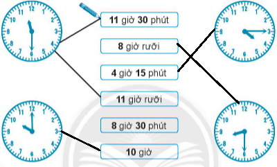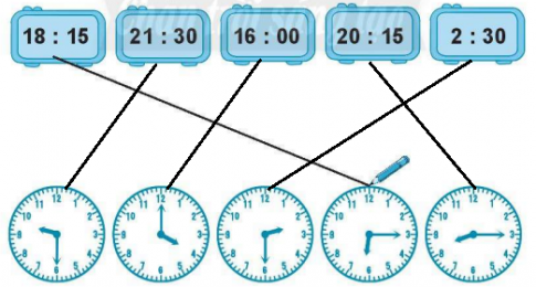 Bài 5. Nối các đồng hồ chỉ cùng thời điểm
