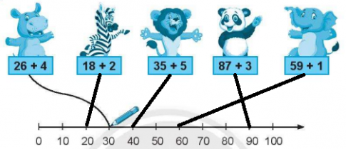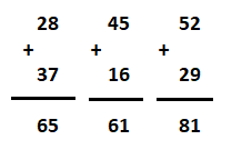 c) 56 + 4 + 32 = 92 d) 75 + 5 + 13 = 93