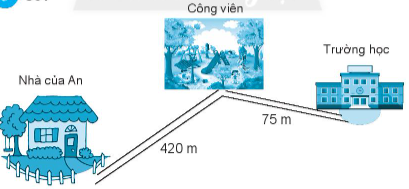 Quãng đường từ nhà An đến trường (đi qua công viên) dài 495 m