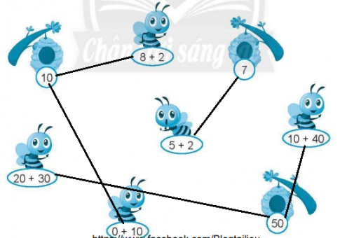 Bài 5. Nối phép tính với kết quả thích hợp để giúp ong về tổ