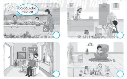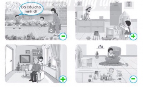 Câu 3. Viết dấu + vào O ở hình chỉ hành động em đồng tình, viết dấu - vào o ở hình chỉ hành động em không đồng tình.
