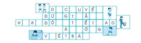 Câu 3. Nhờ có cơ quơn vận động, chúng ta có thể làm được những việc gì? Quan sát hình và viết những chữ cái còn thiếu vào ô chữ để trả lời cho câu hỏi trên.