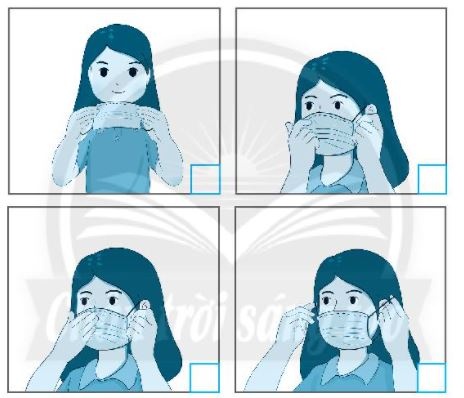 Câu 3. Điền số từ 1 đến 4 vào ô trống ở các hình theo quy trình đeo khẩu trang đúng cách và an toàn.