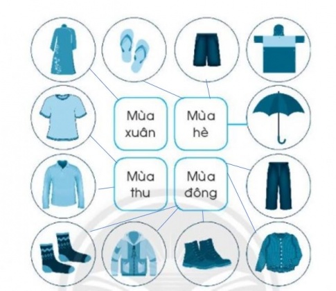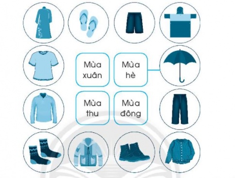 Câu 3. Lựa chọn trang phục phù hợp với mỗi mùa bằng cách nối (theo mẫu).