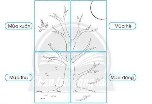 Câu 1. Vẽ tiếp và tô màu để hoàn thiện bức hình có đủ bốn mùa.