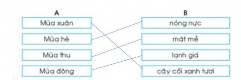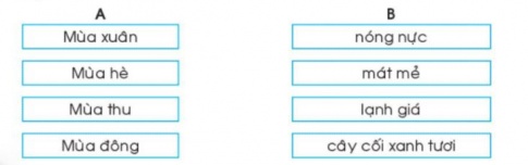 Câu 2. Nối một mùa ở cột A với một số đặc điểm tương ứng ở cột B.