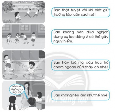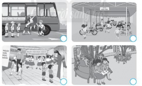 Câu 2. Vẽ mặt cười vào O hÌnh chỉ việc làm em đồng tình, vẽ mặt buồn vào vào O ở hình chỉ việc làm em không đồng tình.