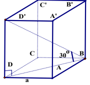 có đáy ABCD là hình vuông cạnh a, đường chéo $BD^{'}$ hợp với đáy ABCD một góc $30^{\circ}$. Tính thể tích của lăng trụ.