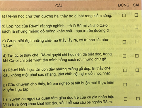 6. Đánh dấu X vào ô thích hợp: