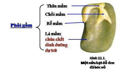 a. Vẽ và chú thích đầy đủ sơ đồ một nửa hạt đỗ đen đã bóc vỏ.