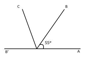$55^{\circ}$ + $\widehat{BOB'}$ = $180^{\circ}$