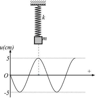 Câu 31: Một sợi dây đàn hồi rất dài được căng ngang và một con lắc lò xo treo trong cùng một mặt phẳng thẳng đứng. Con lắc lò xo có độ cứng k=10 N/m, vật nhỏ có khối lượng m = 25 g dao động theo phương thẳng đứng. Khi vật cân bằng và sợi dây chưa có sóng truyền, vật cách sợi dây một đoạn bằng 5cm. Đầu O của dây được gắn với nguồn dao động điều hòa theo phương thẳng đứng tạo ra sóng ngang lan truyền trên dây với tần số góc
