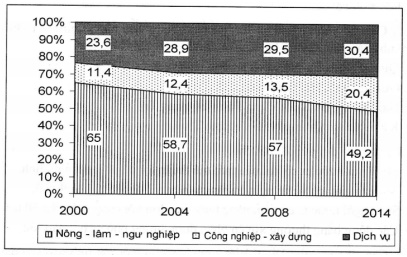 - C. Cơ cấu GDP theo ngành kinh tế nước ta thời kì 2000 – 2014.