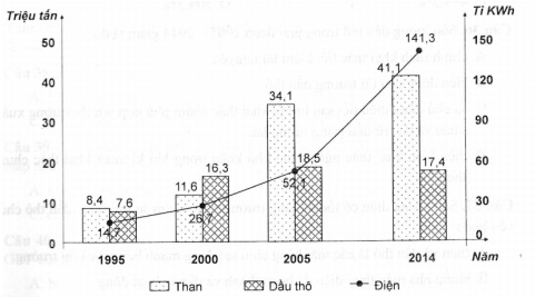 Nhận xét nào sau đây đúng nhất về tình hình phát triển ngành công nghiệp năng lượng ở nước ta giai đoạn 1995 – 2014?