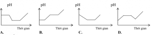 (điện cực trơ, có màng ngăn). Đồ thị nào sau đây biểu diễn gần đúng sự biến thiên pH của dung dịch theo thời gian (bỏ qua sự thuỷ phân của muối) ?