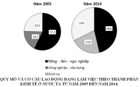 Câu 27: Trong giai đoạn 2005 – 2014, cơ cấu lao động đang làm việc ở nước ta có sự chuyển dịch theo hướng