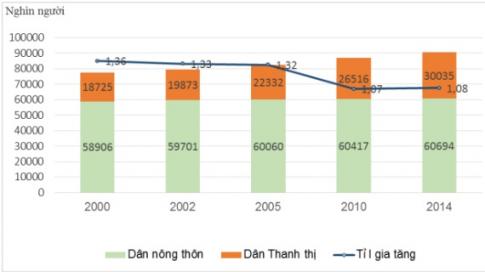 - D. Tỉ lệ dân thành thị giảm, tỉ lệ dân nông thôn tăng .