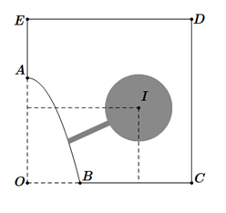 ở giữa ao có một mảnh vườn hình tròn bán kính 10m, người ta muốn bắc một cây cầu từ bờ AB của ao đến vườn. Tính gần đúng độ dài tối thiểu l cây cầu biết: