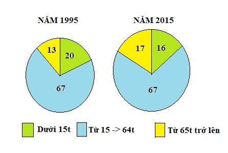 Câu 27: Cho biểu đồ về nhóm tuổi của nhóm nước phát triển năm 1995 và năm 2015: