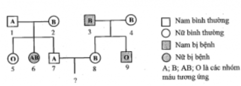 Câu 40. Sự di truyền bệnh P ở người do 1 trong 2 alen quy định và được thể hiện qua sơ đồ phả hệ dưới đây. Các chữ cái cho biết các nhóm máu tương ứng của mỗi người. Biết rằng bệnh P di truyền độc lập với tính trạng nhóm máu và không xảy ra đột biến.