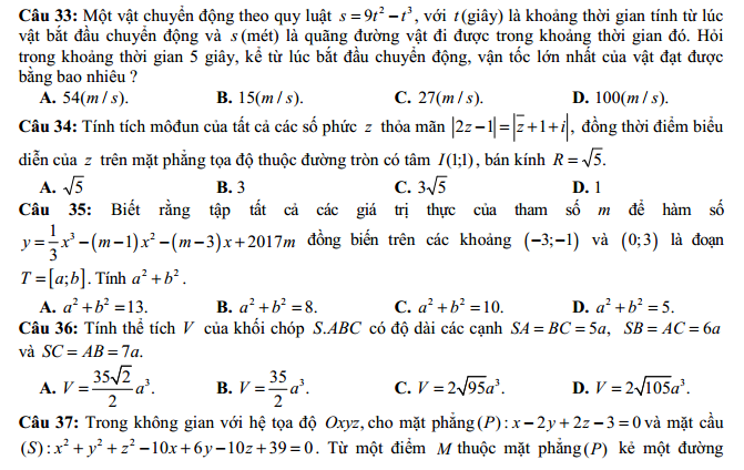 - Đề thi thử THPT quốc gia môn toán năm 2017 của trường THPT chuyên Thái Bình lần 4
